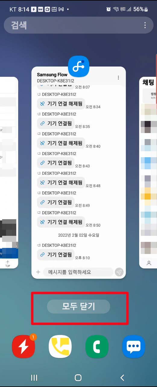 최근에 실행했던 어플들을 모두닫기 해볼게요.