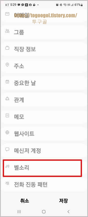 연락처 별 벨소리 설정하기