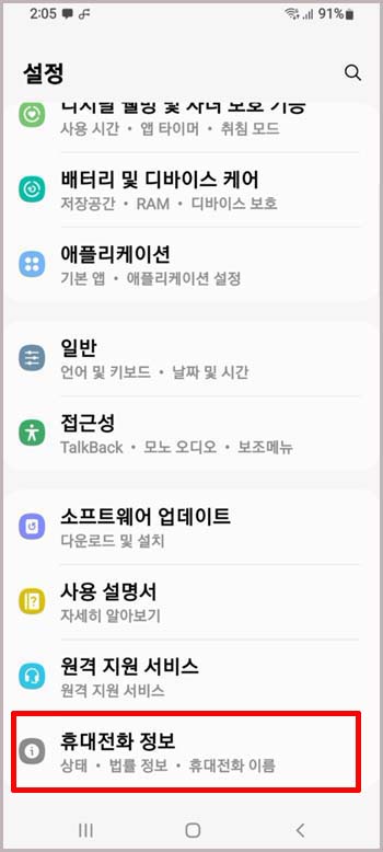 내 폰 일련번호 확인하는 방법 다들 아시죠? 예전에 저도 포스팅했었는데요. 다시 볼까요? 우선 설정에서 맨 아래 휴대전화정보를 눌러 줍니다.