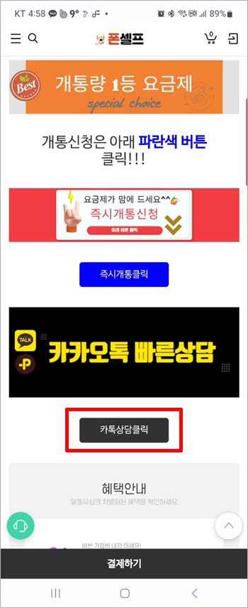 원하는 요금제 화면에서 <즉시개통클릭>을 눌러 주시면 신청화면을 넘어갑니다.