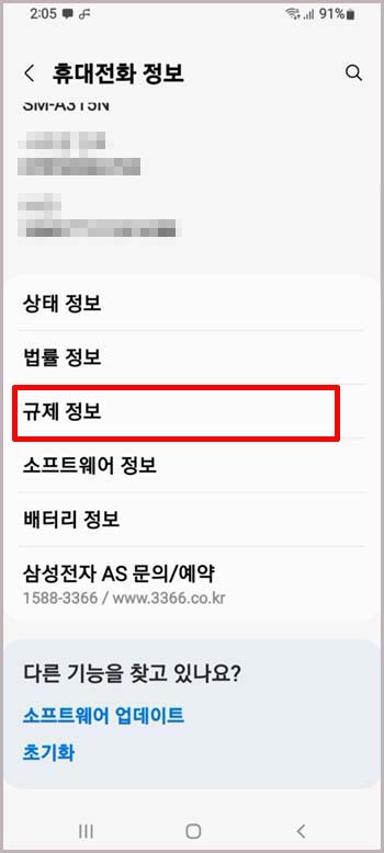규제정보로 들어가 줍니다. 단말기마다 약간씩 메뉴 위치가 다를 수 있어요.