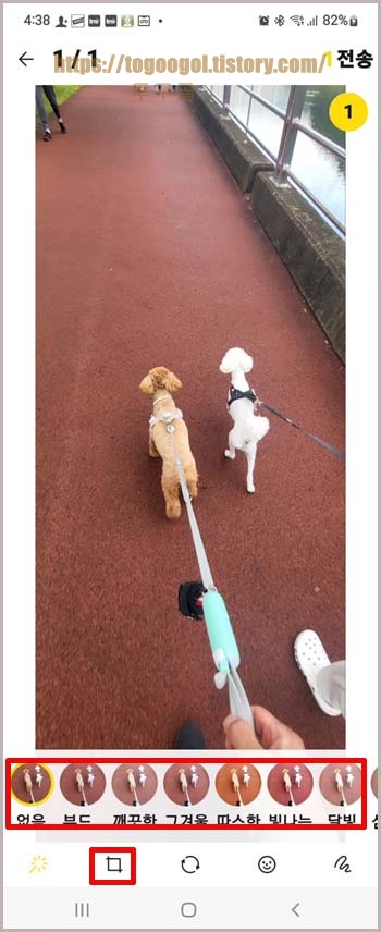 여기서 다양한 기능으로 간단한 편집이 가능한데요. 색감을 조절할수도 있고 크기 조절도 가능합니다. 눌러볼까요?