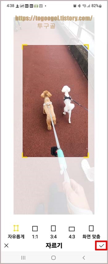 자유롭게는 사각형 테두리를 이용해 원하는 부분만 자를수 있고 외에도 다양한 화면 크기로 설정이 가능합니다. 원하는 부분을 선택하고 체크!!!