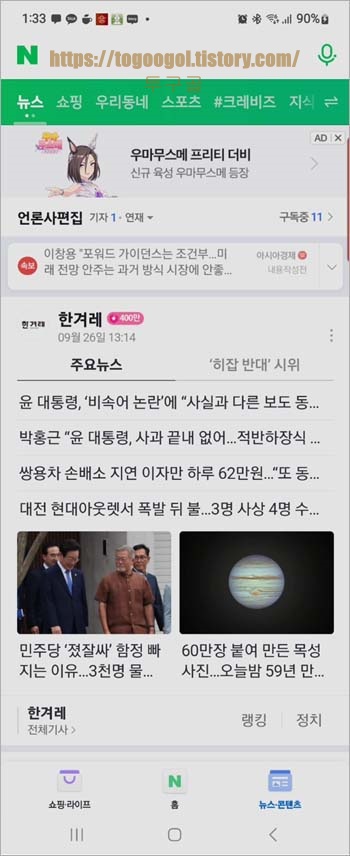 네이버 실행 시 실제로 보이는 밝기를 비교한 화면입니다. 실제로 주변이 어두운 곳에서는 더욱 확연하게 밝기 차이가 나실 거예요. 우리 시력을 나쁘게 만드는 가장 안 좋은 습관이 화면을 밝게 보거나 너무 가까이서 보는 거라고 하죠? 특히나 아직 어린 자녀들한테는 더욱 필요한 기능인 것 같습니다. 문의는 댓글 주시고 오늘도 행복한 하루 보내세요^^