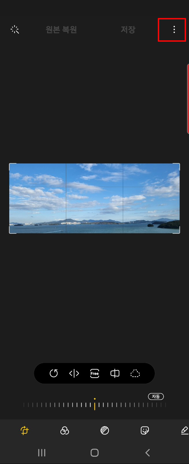 현재 갤럭시는 사진 촬영을 할 때 용량을 선택하는 기능은 지원되지 않기 때문에 일단 촬영을 하고 갤러리에서 편집을 해줘야 합니다. 우선 해당 사진으로 들어가서 우측 하단 점 3개를 누르고 상세정보를 확인해 볼게요.