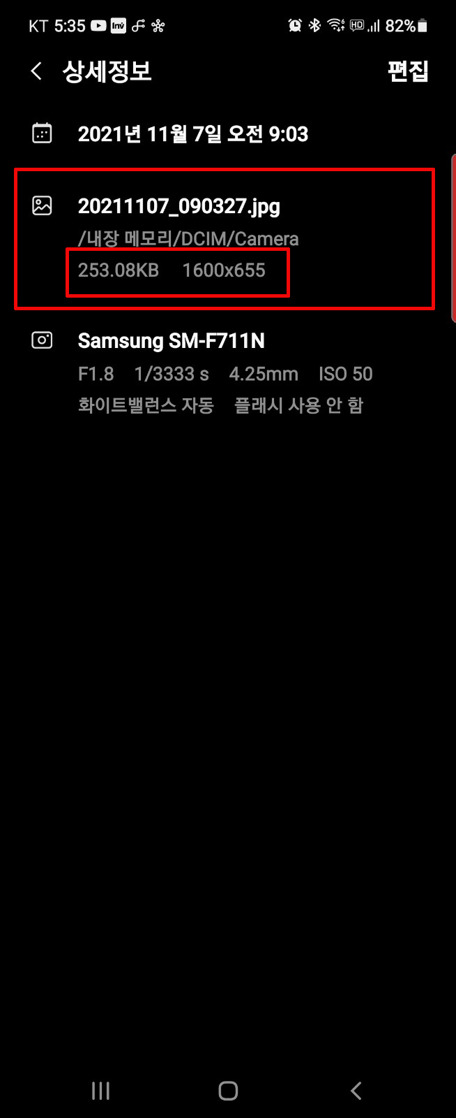 용량을 줄이니까 253.08KB가 되었네요. 이전 크기와 비교해 볼게요.